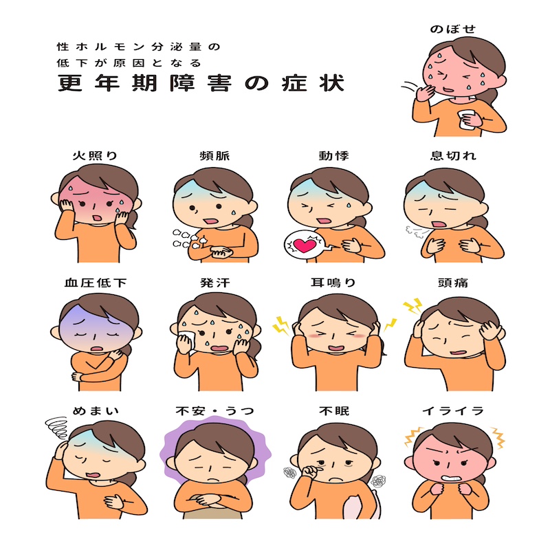 更年期とは・・・女性の一生との関係 2023年11月6日 Filed under: バックナンバー,ブログ,ライフステージ/悩み Laxare 女性の生殖システムにおける生理学的な変化と、それに伴う身体的および生理的な症状を指します。通常、更年期は中年期に入った女性に訪れ、主に40代後半から50代初頭にかけておこります。早い人では40歳台前半、遅い人では50歳台後半に閉経を迎えます。閉経前の5年間と閉経後の5年間とを併せた10年間を「更年期」といいます。男性にも女性の更年期に似た生理学的および身体的な変化が現れる期間を言い、主に中年期から後半の年齢に現れます。 更年期障害 更年期障害の主な原因は女性ホルモン(エストロゲン)が大きく変化する為にさまざまな症状が出てきます。この症状が重く日常生活に支障を来す状態を「更年期障害」と言います。加齢などの身体的因子、成育歴や性格などの心理的因子、職場や家庭における人間関係などの社会的因子が複合的に関与することで発症すると考えられています。 どのような症状があるのか 更年期にはさまざまな症状が伴うことがあり、これらの症状は個人差がありますが、一般的なものには大きく分けて3つになります。①放熱や血管の拡張にともなっておこる:ホットフラッシュ・火照り・のぼせ・発汗など②さまざまな身体症状:めまい・頻脈・動悸・息切れ・耳鳴り・頭痛や肩こり・しびれ・冷え・疲れやすさなど③精神な症状:イライラ・気分の落ち込み・意欲の低下・情緒の不安定・不眠など更年期症状は個人によって異なり、症状が軽度である場合もあれば、重度で生活に影響を及ぼす場合もあります。 更年期の症状が辛い時には 更年期セルフケアの基本は「運動・食事・睡眠」無理のない範囲で、少しずつ身体を動かしてみる習慣をつける。更年期の体力作りはこれからくる将来の寝たきりを防ぎ、快適に過ごす土台づくりにつながります。次に、「食事」バランスよく食べるのはもちろんのこと、(抗酸化作用のある食品)が良いとされています。タンパク質を積極的に摂りましょう。どれくらい摂っておきたいのかは「手のひら1枚分」を目安に意識してみて下さいね。タンパク質は主に筋肉・臓器・髪の毛・肌・ホルモンや抗体に至るまで身体を作るのに欠かせない栄養素です。また、カルシウムとビタミンDで骨粗鬆症の予防を。更年期以降は骨密度の低下が起こりやすくなります。女性ホルモンに似た働きをする「大豆イソフラボン」を取り入れることで、更年期の不調の改善がきたいできますよ。もう一つ重要な「睡眠」、質のいい睡眠は、メンタル面の安定に必要不可欠。よく眠れると体の回復だけでなく、心までスッキリします。 更年期間は 毎日の積み重ねは、更年期の不調改善だけでなく、将来の健康寿命を伸ばすことにもつながります。不安定になってしまう心も優しく受け止めながら、「今は自分の心や体をいたわる時期なんだ」・「まぁいいか」とゆとりを持って過ごすと良いでしょう。